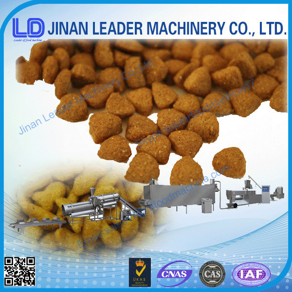 220 - 380V 800 - 1000kg / h Dog Food Extrusion Feed Machinery Industries CE 1. Description of pet food making machine Pet food processing line uses meat meal, fish meal, corn powder, soya meal and other grains’ powder as main materials to make the pet food, like dog, cat, fish, bird food etc. with different shapes and taste by changing the dies, formulations. The pet foods are made under high temperature condition, and popular to the pet food market. 2. Raw materials: meat