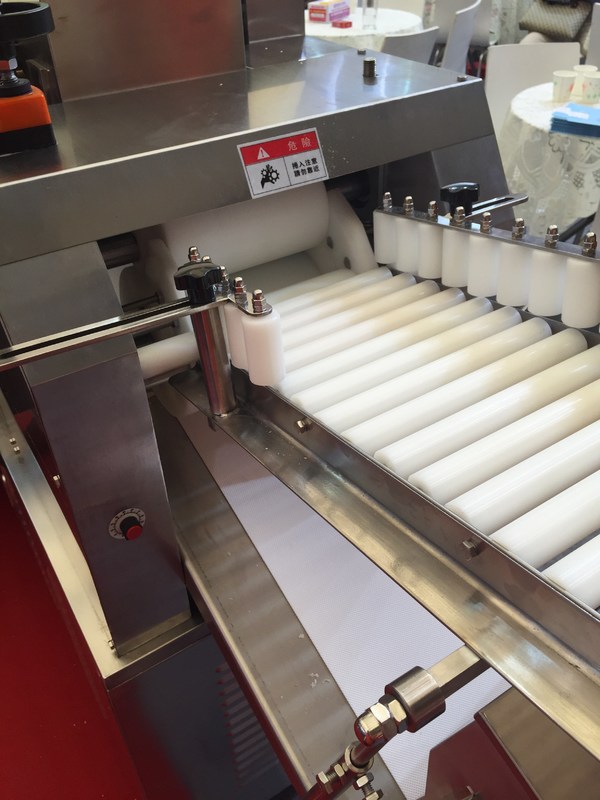 1) Het deeg wordt gekneed door het eerste rolwiel, waar u de dikte van het deeg kunt aanpassen, en gerold door roterende die rollen van twaalf rolwielen worden gemaakt en een rolwiel tussen haakjes van klappend beetje bij beetje het deeg te maken meer oppoetsen, zijn het gewicht en de kwaliteit stabiel. Dan gekneed door goed gevormd wiel dat de dikte van het deeg, volgens de eisen van de klant kan aanpassen.