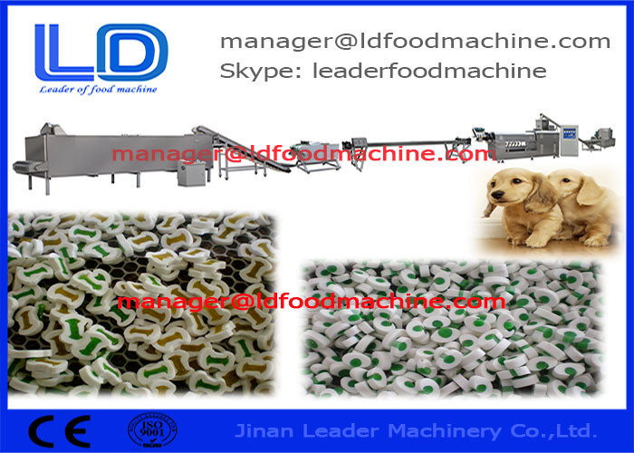 Automatic Chewing Pet Food Processing Line / Pet Food Making Machines Quick Details Application: Pet Food Like: Cat, Dog, Fish, Bird etc. Voltage: 380V/50HZ/Three Phase, 220V/50HZ/Single Phase or Change As Required Power(W): 73kw,93kw,100kw,148kw Weight: 4000kg Dimension(L*W*H): 25000x1500x2200mm Warranty: 1 Year After-sales Service Provided: Engineers available to service machinery overseas Automation: Fully Automatic Machinery Materials: Food Grade Stainless Steel Raw
