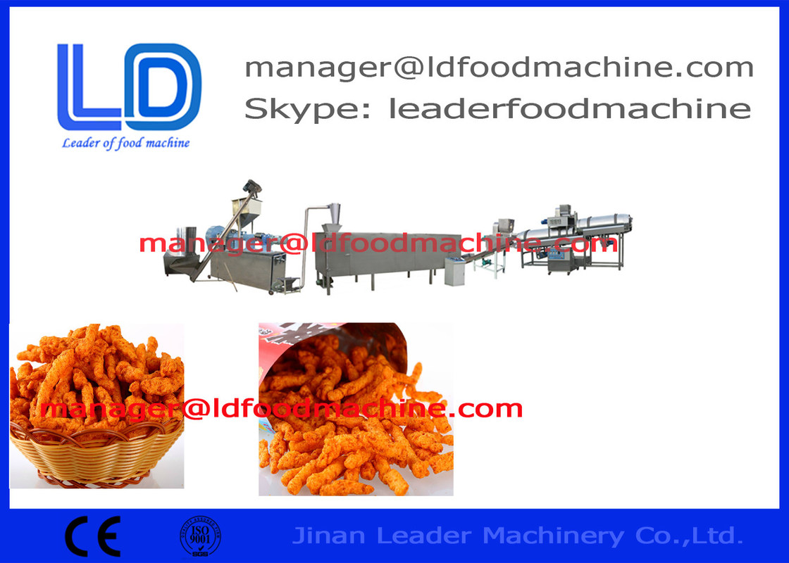 Kurkure Cheetos Niknak Machine / Automatic Food Processing Equipment Quick Details Condition: New Application: Kurkure/Cheetos/Niknak Voltage: 3 phase 380V, 50Hz (3 phase 220V, 60Hz) Power(W): 70-100kw Weight: 5000kg-9000kg Dimension(L*W*H): 17300*1200*2600 mm Warranty: 1 year After-sales Service Provided: Engineers available to service machinery overseas Capacity: 125kg/h, 230kg/h Motor: Simens Electronic parts: FUJI, LG Relay: Omron Materials: Stainless steel Specifications