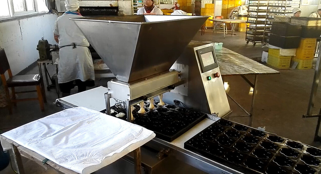 8) A máquina de carcaça da massa de bolo/bolo que forma a máquina pode fazer o doce ou a manteiga ou o outro líquido que enchem-se dentro do bolo.