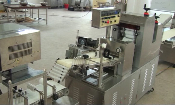 1) The dough is kneaded by the first roller wheel, where you can adjust the thickness of the dough, and rolled by rotary rollers made of twelve roller wheels and a roller wheel by the way of flapping bit by bit to make the dough more polish, weight and quality are stable. Then kneaded by shapely wheel which can adjust the thickness of the dough, according to the customer’s requirements.