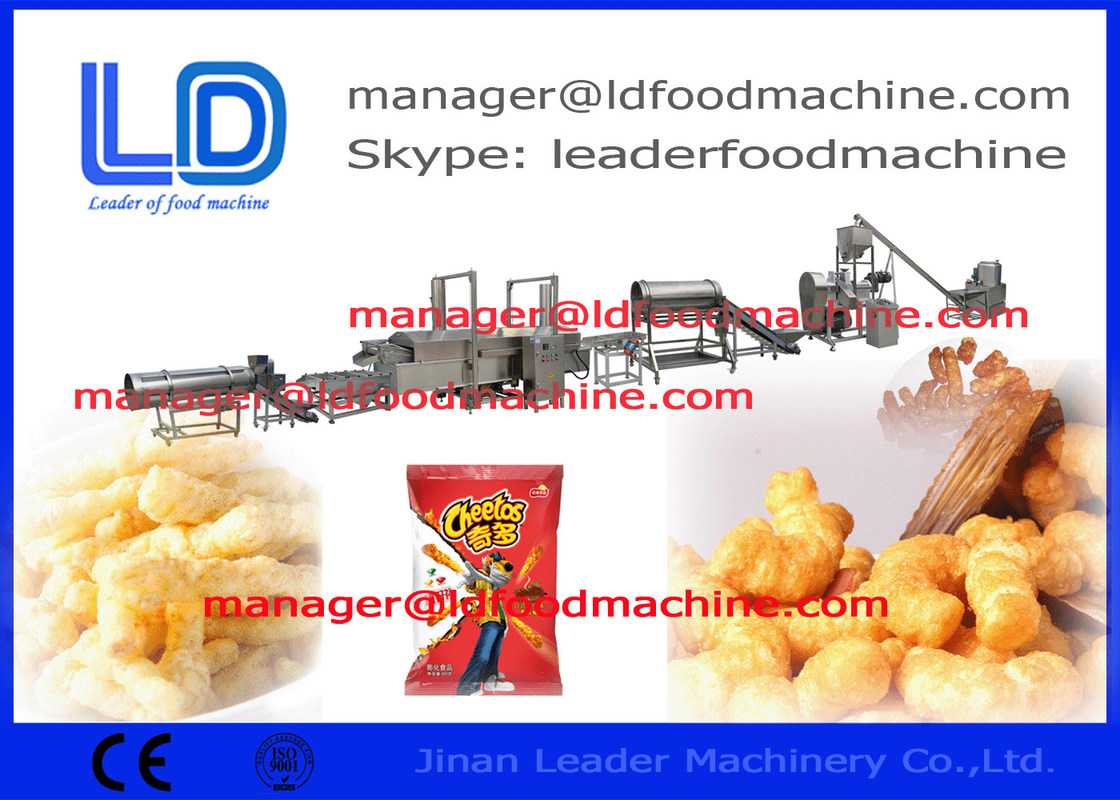 Fried Nik naks Cheetos Kurkure Making Machines With Retary Extruder Quick Details Condition: New Application: Kurkure/Cheetos/Niknak Voltage: 3 phase 380V, 50Hz (3 phase 220V, 60Hz) Power(W):136KW,95KW Dimension(L*W*H): 17300*1200*2600 mm Warranty: 1 year After-sales Service Provided: Engineers available to service machinery overseas Capacity: 200-230KG/H Motor: Simens Electronic parts: FUJI, LG Relay: Omron Materials: Stainless steel Description: Kurkrue/Cheetos food machine